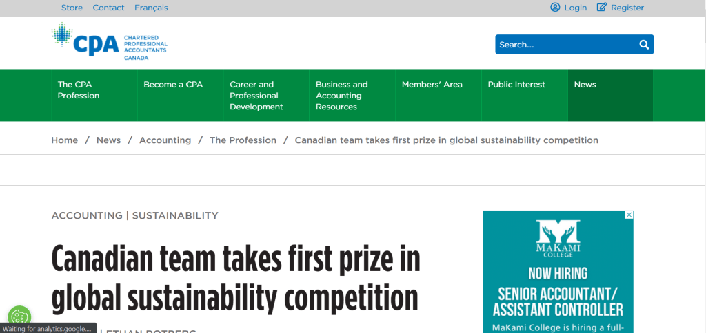 Canadian team takes first prize in global sustainability competition